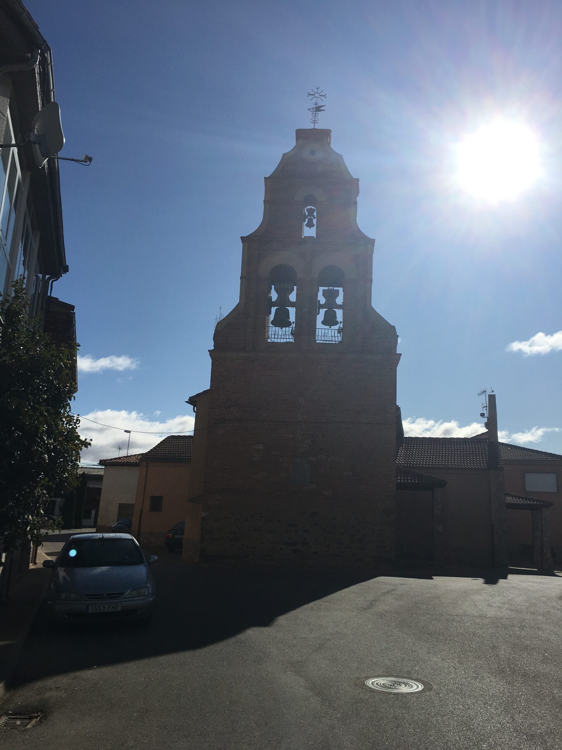 We walked from the village of Mazarife 12 miles to Santibanex de Valdeglasias. We are checked into our Albergue for the night. We have a dorm room tonight. We left Mazarife about 7:30 this morning with wool layer, buff, gloves and wool socks. It warmed in the sun but is a bit cool. We arrived here about 2 and have had shower and laundry. Now enjoying a tonic and chips.