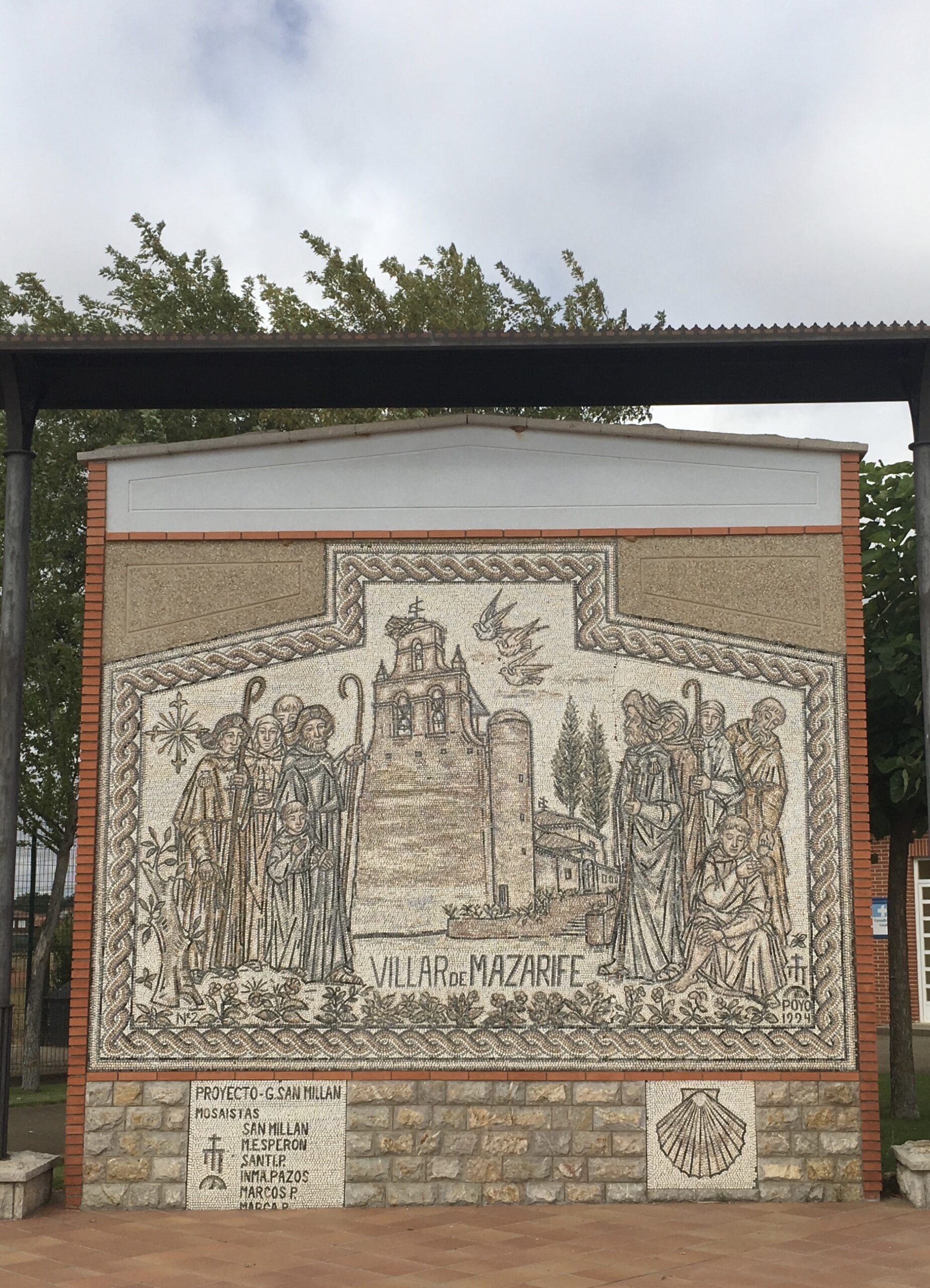 Today we walked about 9 miles to the village of Mazarife. We are taking it light to break in but will need to do a bit more tomorrow to keep up. We walked on many surfaces and viewed fields, clouds, villages and pilgrims. The way is well marked with rocks, shells and arrows in many places and forms. I am learning to move quick and early. We had twenty in our room last night but I actually had a good nights rest. I awoke around 6, sat up and put my head in my hands for a few moments. Then I dressed, packed up in the dark and then when that was all set went and washed up. I have gotten quite proficient with my pack and sensitive as to how it feels. There is a sweet spot that I go for with my adjustments that feels quite right.