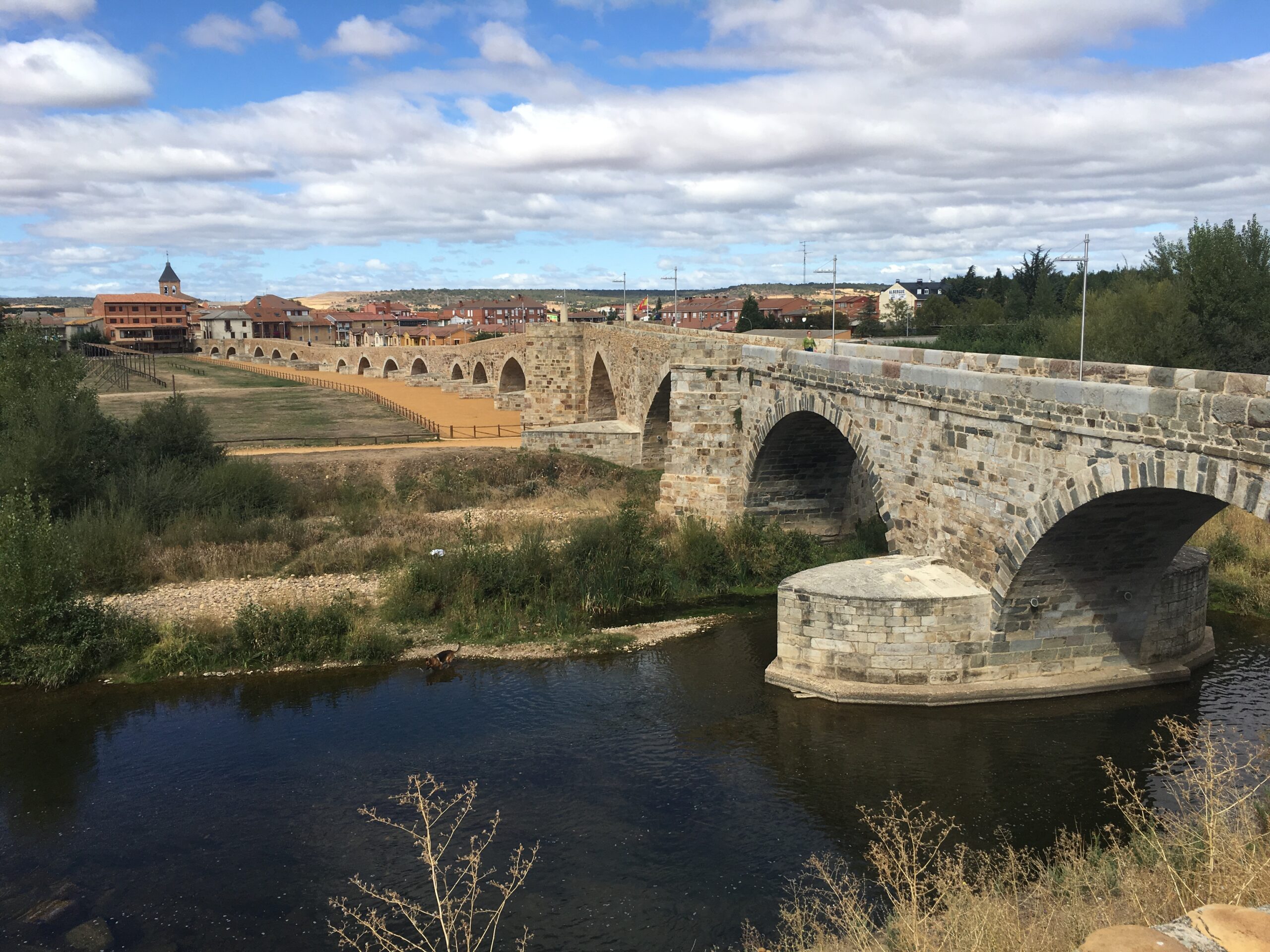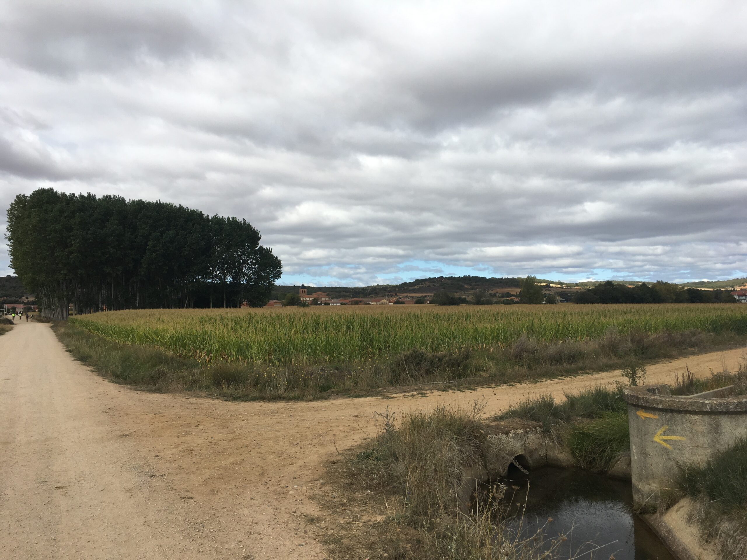 We walked from the village of Mazarife 12 miles to Santibanex de Valdeglasias. We are checked into our Albergue for the night. We have a dorm room tonight. We left Mazarife about 7:30 this morning with wool layer, buff, gloves and wool socks. It warmed in the sun but is a bit cool. We arrived here about 2 and have had shower and laundry. Now enjoying a tonic and chips.